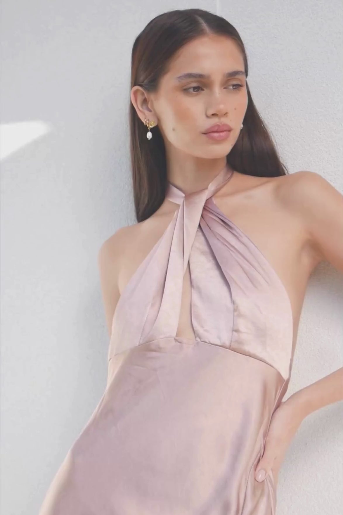 Step into sophistication with the Emyrose Maxi Dress. This stunning dress in Dusty Pink is perfect for making a statement at any special event. Designed with a sleek, satin-like finish, this dress drapes beautifully, highlighting your silhouette with its flattering halter neckline and backless design. The delicate tie at the neck adds a touch of allure, while the high slit ensures you move with grace and confidence.